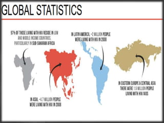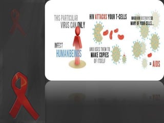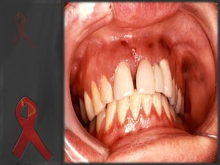 The document presents an overview of HIV/AIDS, including its definition, transmission, symptoms, and treatment options. It highlights the origins of HIV, the difference between HIV and AIDS, and the common oral manifestations associated with HIV infection. It also discusses statistics on HIV prevalence in Pakistan and emphasizes the importance of prevention methods and myths surrounding the disease.