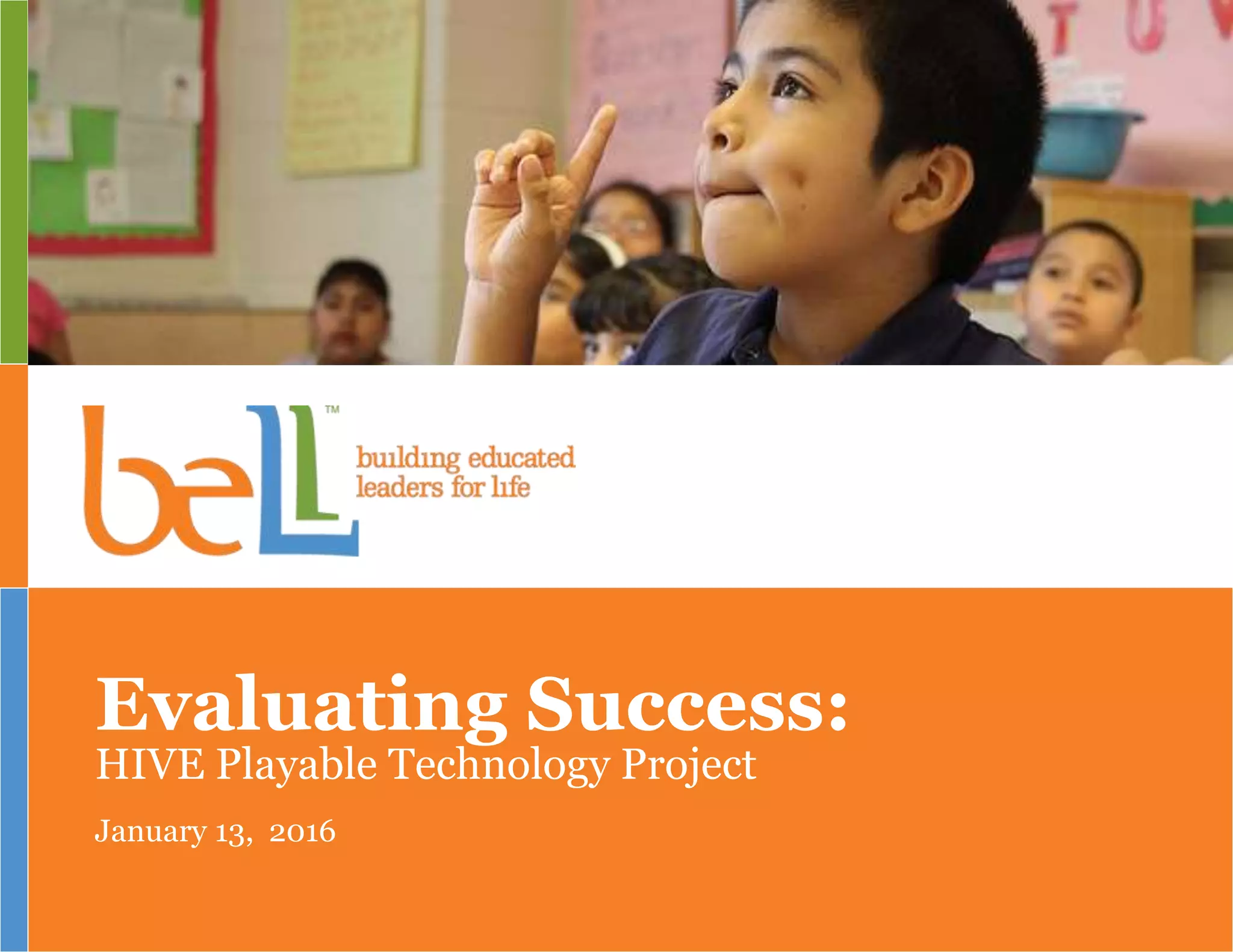 The document discusses the Bell program aimed at improving academic achievement for children in under-resourced communities through summer and after-school programs. It highlights the importance of addressing summer learning loss which affects disadvantaged students significantly compared to their middle-income peers. Additionally, it outlines challenges in measuring the success of a playable technology program and proposes solutions for better assessment and curriculum improvement.