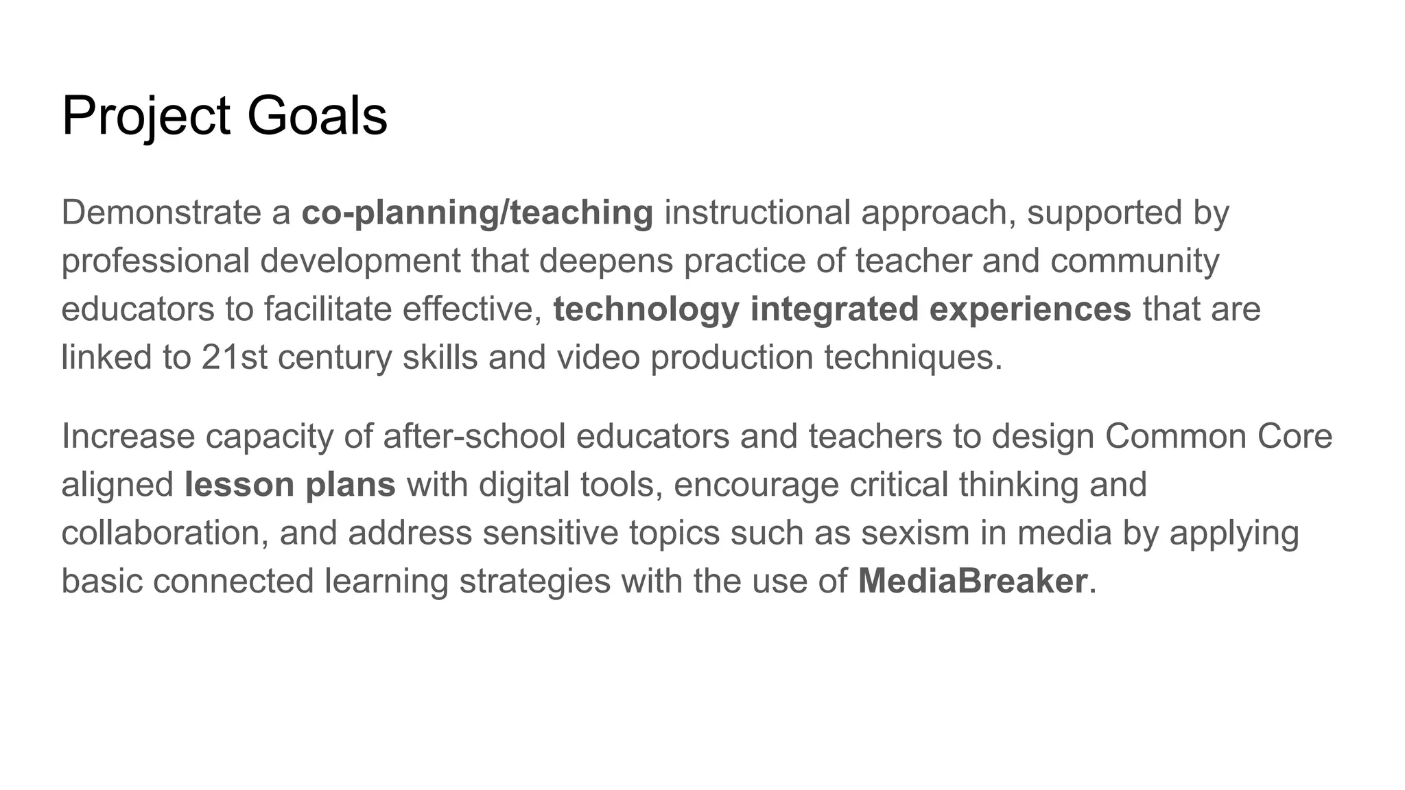 Connect2Tech is working with educators from 5 sites to develop technology-integrated lesson plans aligned to common core standards. The project aims to increase educators' capacity to design lessons using digital tools that encourage critical thinking and address topics like sexism. Educators received training in August and will have coaching visits, with a second training scheduled for October. Lesson plans will be collected during site visits and educators will share stories of lessons on EdModo.