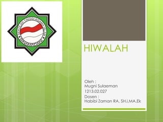 Dokumen ini menjelaskan pengertian hiwalah dalam konteks syara', yang merupakan pemindahan tanggung jawab utang dari satu pihak ke pihak lain. Hiwalah mencakup berbagai jenis dan rukun, serta syarat yang harus dipenuhi untuk sahnya hiwalah. Selain itu, dokumen ini menjelaskan hikmah hiwalah dan kondisi-kondisi yang menyebabkan berakhirnya akad hiwalah.