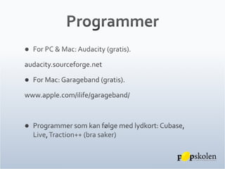 enkelt og kan gjøre audioopptak med god kvalitet (men obs: alle betalte audiosequencere er bedre)