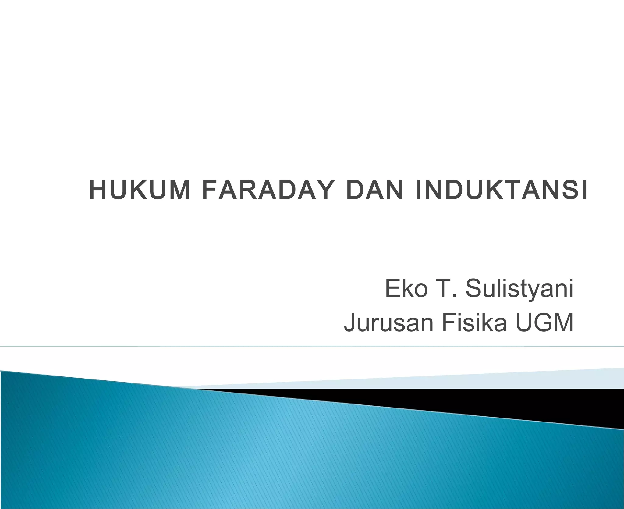 Dokumen tersebut membahas tentang hukum Faraday dan induksi elektromagnetik, termasuk definisi induktansi diri, hukum Faraday, hukum Lenz, generator listrik, dan persamaan Maxwell.