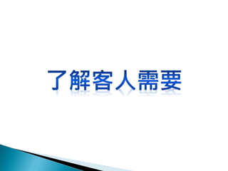 盡量清晰快速地回應 多運用選擇性策略作推銷 簡單 , 直接地建議任何解決問題之方法