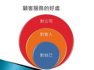 顧客服務是提升客人滿意度的活動,涉及提供合適建議和增強溝通。優質顧客服務包括傾聽客戶需求、提供準確資訊,以及保持良好的個人形象。有效的服務能夠改善公司形象及增加市場佔有率。