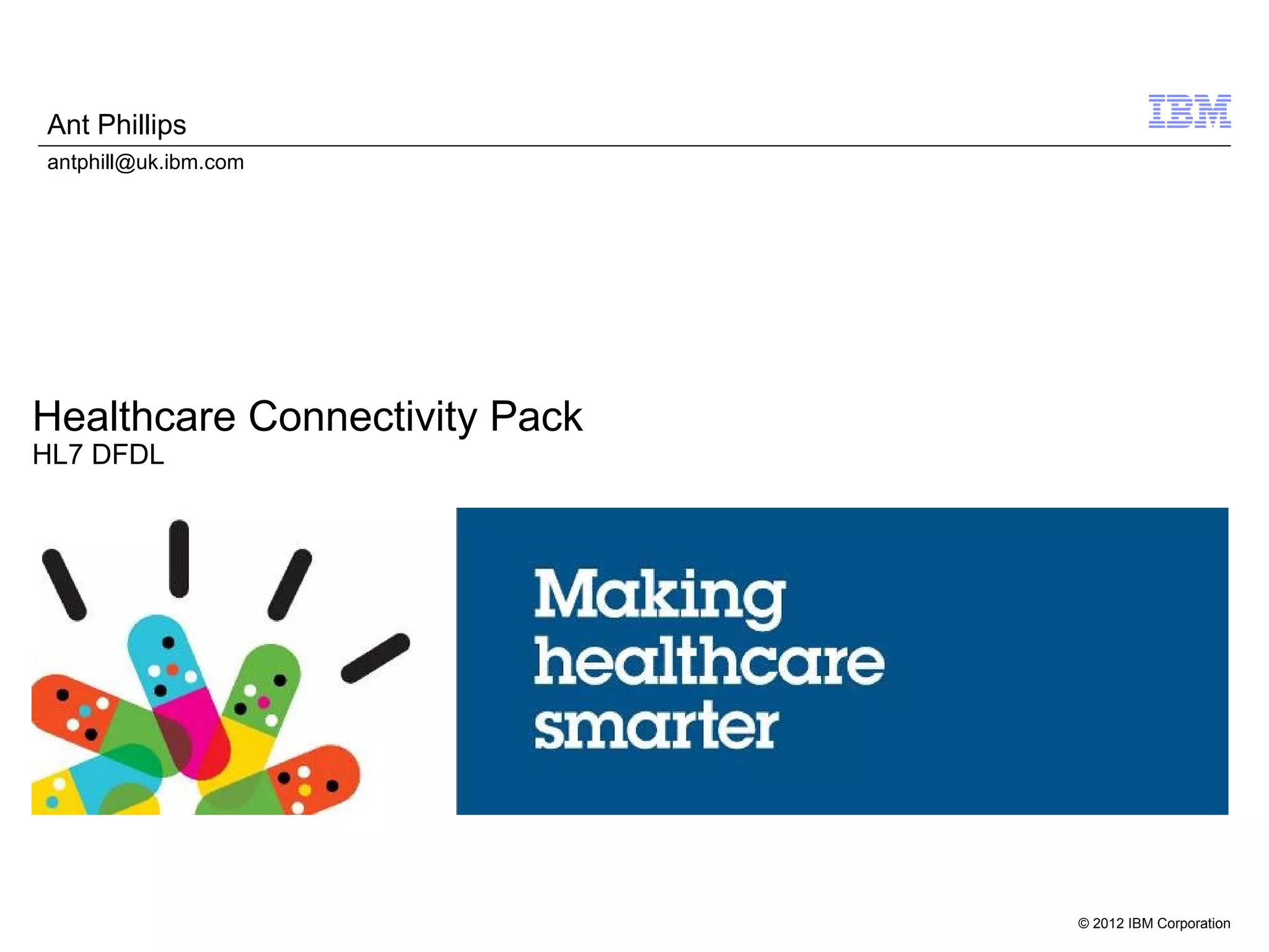 This document discusses the IBM Healthcare Connectivity Pack which includes HL7 data modeling capabilities and transformation options for healthcare integration. It provides DFDL models for HL7 v2.5, v2.6 and v2.7 which can generate JAXB classes and be used for testing and validation. The document also mentions that IBM Integration Bus supports various transformation techniques including mapping, XSLT, ESQL, Java and .NET, and that the debugger allows stepping between message flows and Java code.