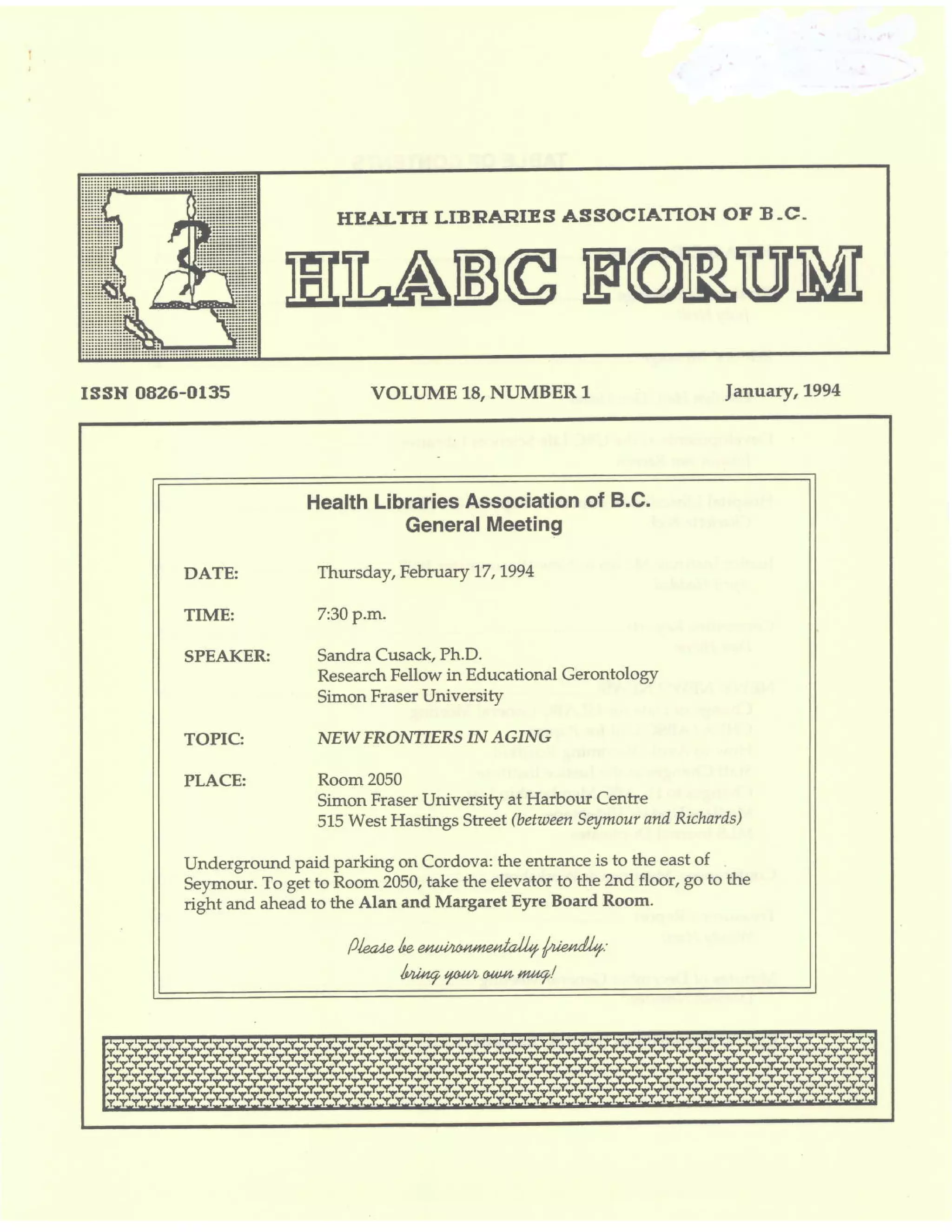 The quarterly newsletter of the Health Libraries Association of British Columbia.
