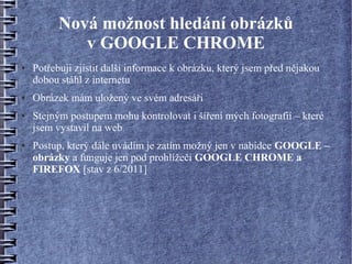 obrázky a funguje jen pod prohlížeči GOOGLE CHROME a