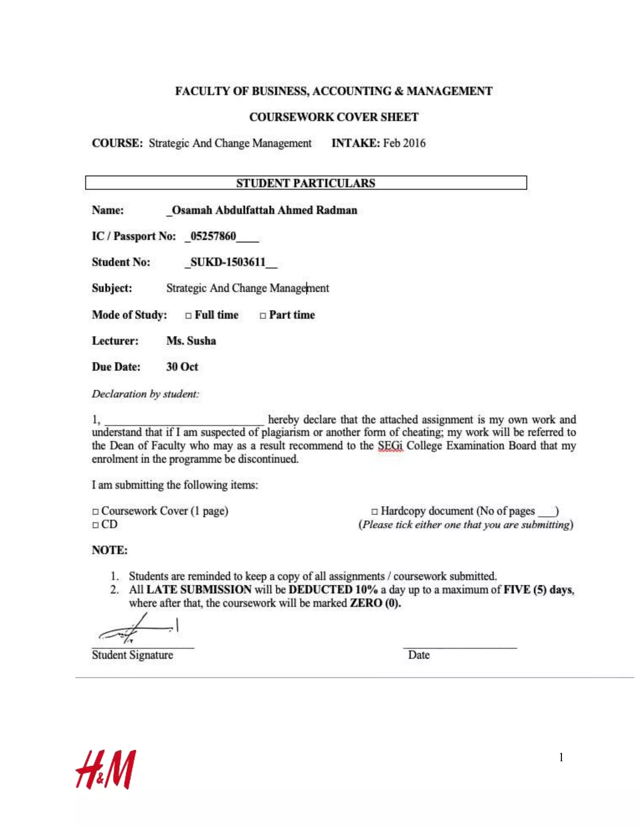 H&M is a worldwide clothing retailer operating in over 70 countries. It has many strengths including a diverse global presence, commitment to sustainability, and strong brand recognition. However, it also has weaknesses such as a history of unethical labor practices and over-reliance on third-party suppliers. Opportunities for growth include expanding into emerging markets. Threats come from competitors and any issues that damage the company's reputation. A SWOT analysis can help H&M identify its internal strengths and weaknesses as well as external opportunities and threats to develop effective business strategies.