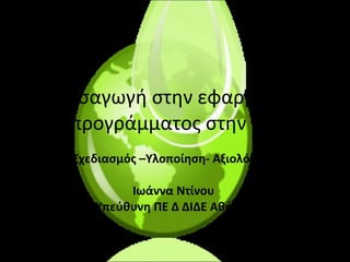 Εισαγωγή στην εφαρμογήπρογράμματος στην ΠΕ Σχεδιασμός –Υλοποίηση- Αξιολόγηση Ιωάννα Ντίνου Υπεύθυνη ΠΕ Δ ΔΙΔΕ Αθήνας