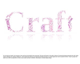 - The author has been working for Hobbycraft in Dundee for just under a year and their project focuses on promoting craft to the community.