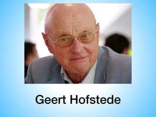 Geert Hofstede è un ricercatore olandese noto per il suo modello di analisi delle differenze culturali tra paesi, basato su sei dimensioni culturali. Un confronto tra Italia, Cina e Norvegia evidenzia significative differenze nella distribuzione del potere, individualismo, mascolinità, avversione all'incertezza, orientamento a lungo termine e indulgenza. La ricerca mostra che, nonostante la vicinanza geografica, Italia e Cina condividono somiglianze culturali, mentre la Norvegia presenta caratteristiche opposte.