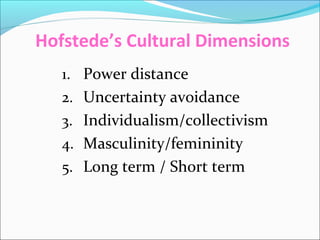 - Organize cultural appreciation workshops that educate students about different cultures based on Hofstede's dimensions such as power distance, individualism vs. collectivism, masculinity vs. femininity