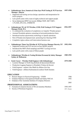 Greg Hogan has over 30 years of experience in the oil and gas industry, holding roles such as Managing Director of Bluechip Marketing and Director of Upstream Petroleum. He has expertise in project management, business development, drilling, and engineering services for hydrocarbon field development. Hogan has an Honours degree in Electrical Engineering and qualifications in occupational health and safety and company directorship.