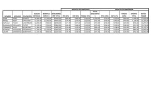 This document contains a payroll table listing employees of a company with their occupation, monthly salary, bonuses, total remuneration, and deductions. It shows each employee's contributions to IPSS (social security), SNP (health insurance), and FONAVI (housing fund), as well as total contributions, deductions, and net pay. The highest paid is the General Manager at $7,020 monthly net, while the lowest is the Secretary at $2,691 monthly net.