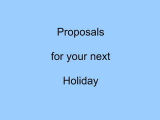 The document lists several potential holiday activities and destinations including a new beach in Japan, visiting the Grand Canyon's Skywalk, going to a theme park in Las Vegas, watching a tennis match in Dubai, doing mountain activities, or going cycling. It concludes by saying to have a nice holiday whatever is chosen.