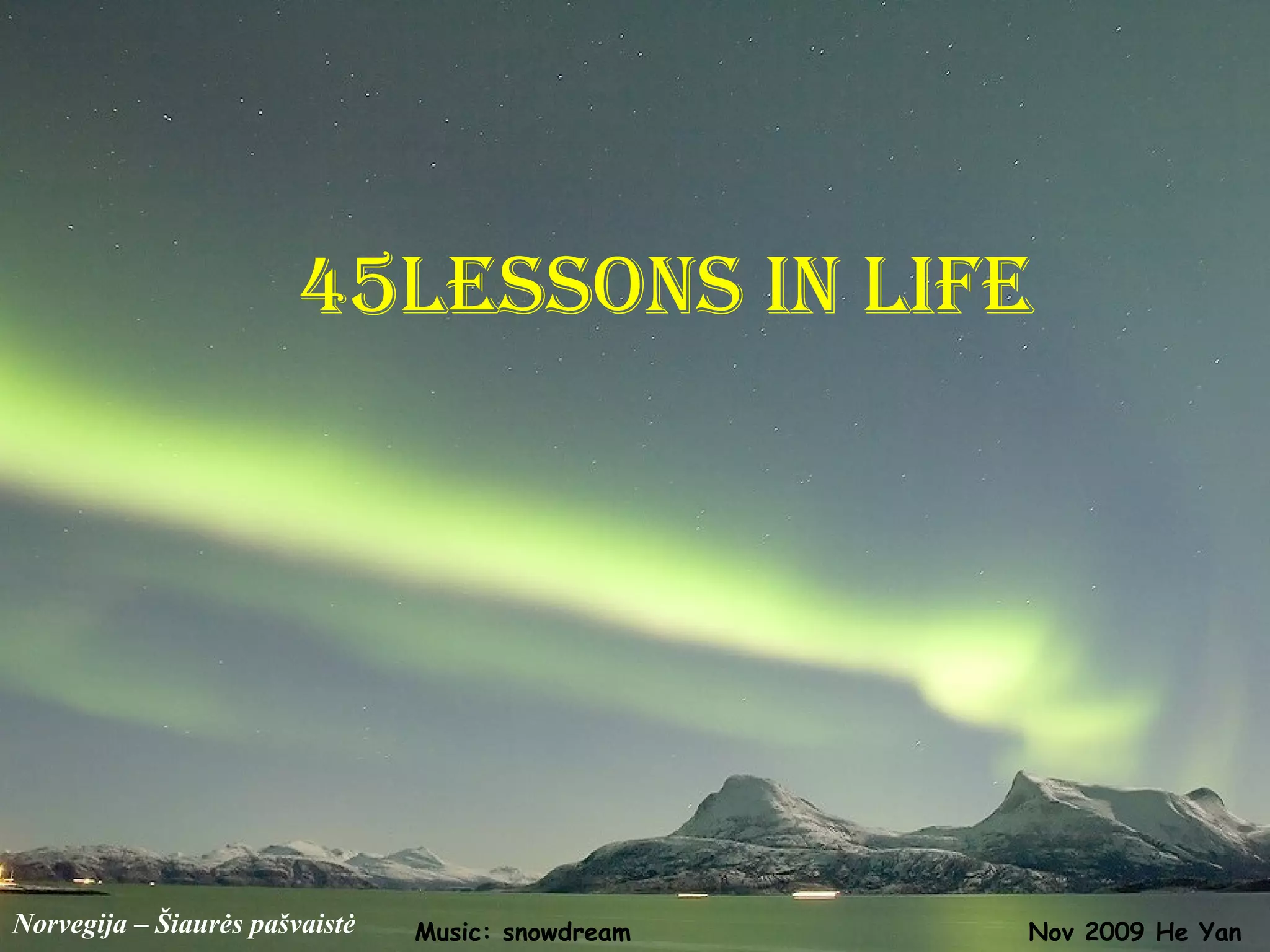 The document contains 45 lessons or pieces of advice on life. Some of the key lessons include: don't compare your life to others as you don't know their journey; forgive everyone for everything; time heals almost everything so give it time; and how growing old is better than the alternative of dying young. It encourages the reader to forward the document if they are part of the 7% that will and to remember that the author will always share with the recipient.