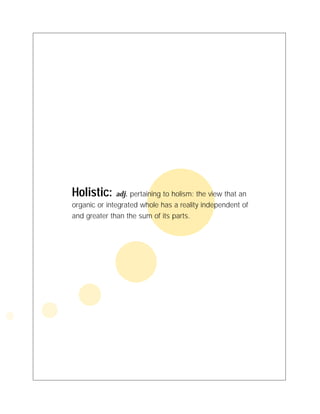 The document discusses the concept of holistic marketing, emphasizing the importance of blending brand consistency with flexibility to adapt to a diverse range of marketing media and changing consumer preferences. It argues that every employee acts as a brand ambassador and that organizations must ensure consistent internal communication about branding strategies. The author advocates for finding the right marketing partner who understands both integrated and holistic marketing principles to effectively convey the brand's message across various platforms.