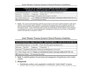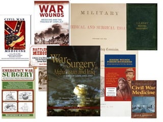 The document discusses the evolution of trauma care in military settings, emphasizing lessons learned from conflicts such as Iraq and Afghanistan. It highlights advancements in practices like damage control resuscitation and the use of tourniquets, which have informed both military and civilian medical practices. The document underscores the importance of research and the need for proper training and protocols to improve casualty care outcomes in both military and civilian contexts.