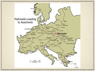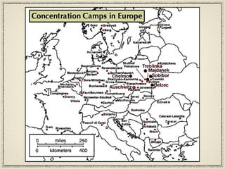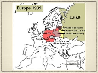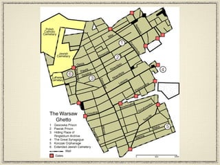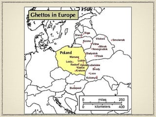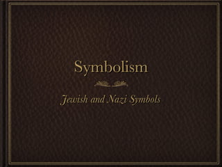The document provides information about Jewish and Nazi symbols throughout history and discusses the rise of Nazi power in Germany in the 1930s and 1940s. It includes photos documenting Nazi propaganda and persecution of Jews, including the establishment of ghettos. Key events mentioned are Kristallnacht (Night of Broken Glass) and the signing of the German-Soviet nonaggression pact in 1939 which allowed Germany to invade Poland and begin widespread persecution of Jews across Europe.