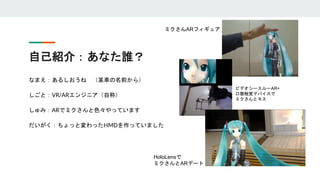 比較的言及される事が少ないHoloLensの光学系について、入門的な紹介として解説したスライドです。引用、紹介はその範囲内で出典を明記の上ご自由にしていただいて大丈夫ですが、その範囲を超えた商用利用は避けてください。
