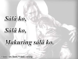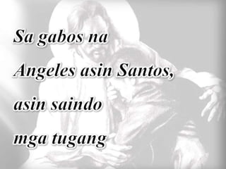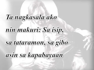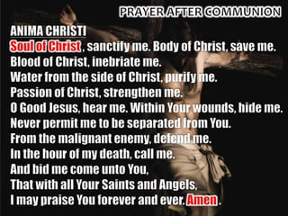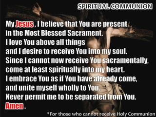 This document contains the text for the Act of Contrition prayer, as well as outlines and instructions for parts of the Catholic Mass including the Kyrie, Gloria, Gospel reading, Creed, Lord's Prayer, and concluding rites. It provides the essential elements and flow of the Mass through summaries of the key prayers, readings, and responses between the priest and congregation.