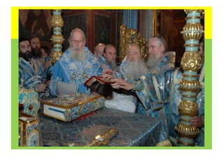 The Sacrament of Holy Orders continues Christ's priesthood by ordaining men to serve the Church. There are three levels of ordination: deacon, priest, and bishop. Deacons serve the bishop and help those in need. Priests preach, celebrate the Eucharist, and serve the faithful. Bishops teach the faith and ordain new priests and bishops. Ordination imprints an indelible spiritual mark and configures the man to Christ the priest.