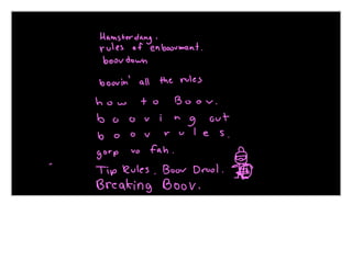 A celestial being offers the Boov gifts of infinite knowledge and space candy, but the Boov's rules prohibit such things. Tip becomes frustrated with the rules and convinces Kyle to take a vacation so she can become the new rule maker. Oh agrees to teach Tip the key Boov rules, but there are so many rules that even a summary by Stephen Fry takes a long time to get through. Tip questions why the Boov can't have more freedom with things like how they curl their nostrils.