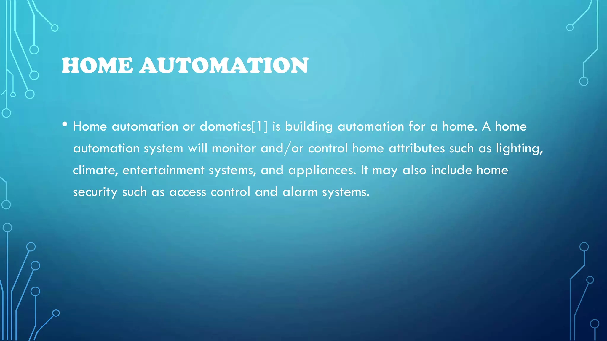 The document discusses home automation systems and their history. A home automation system monitors and controls home attributes like lighting, climate, entertainment systems and appliances. Early home automation began with labor-saving machines in the 1900s with the introduction of electric power distribution and appliances. Modern home automation uses sensors, remote controls, smart thermostats, lighting systems, voice interfaces, smart devices and motion sensors to automate home functions over Wi-Fi or the internet.
