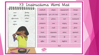 - A lesson on using commas in lists, with examples like "The fruit bowl has oranges, bananas, pears, kiwis and apples in it."
