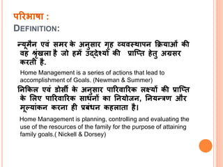 न्यूमैन एवंसमि के अनुसाि गृह व्यवस्थापन क्रियाओं की