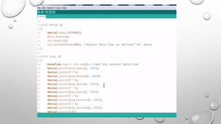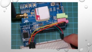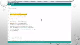 This document outlines a home security system project that uses IoT components including an Arduino Uno, GSM shield, real-time clock module, PIR sensor, breadboard and wires. It details the components, cost of around 2,272 TK, connections, working process, software part, advantages like added convenience and security, disadvantages like cost and reliability issues, and concludes the presentation.
