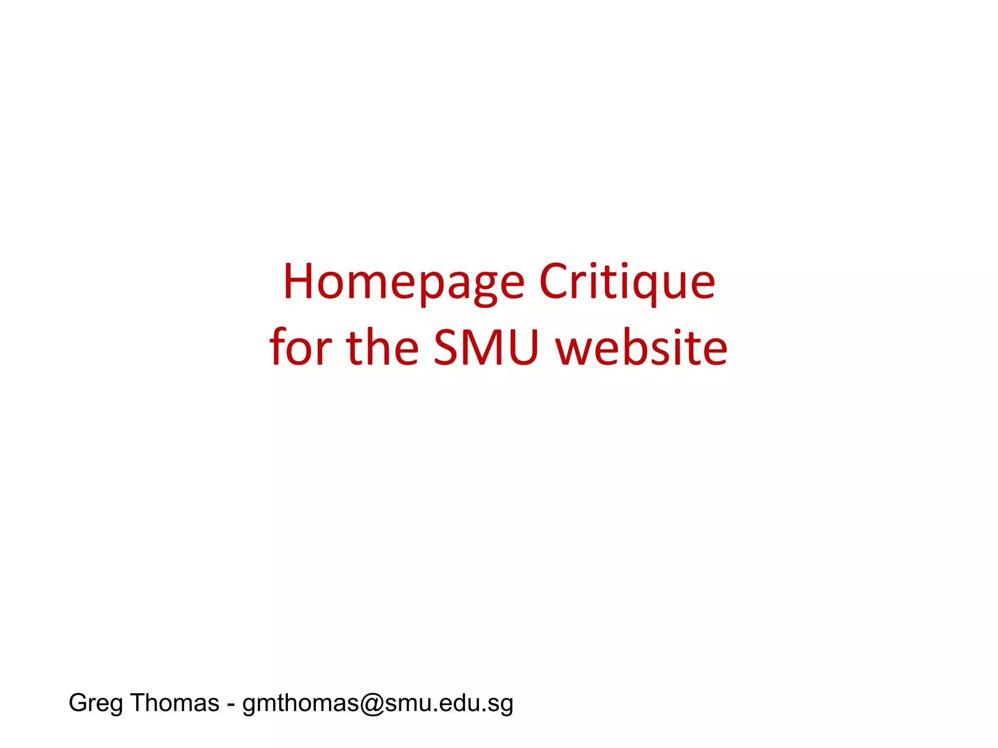 This document provides a critique of the SMU website homepage. It analyzes various design and functionality elements, including: