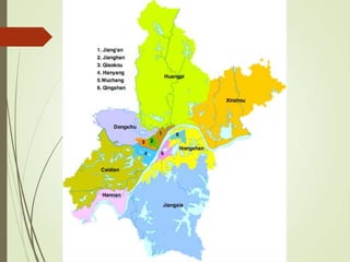 Wuhan is a large city located in central China with over 10 million residents. Some key attractions include East Lake, known for its scenic views, and the Hubei Provincial Museum. Special foods unique to Wuhan include hot and dry noodles, bean skin, soup with lotus root and chop, and Wuchang fish, which is famous throughout China. Mao Zedong once wrote a poem praising the fish of Wuchang.