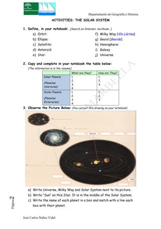 2. Activities on the solar system - defining terms and labeling a diagram.