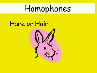 The document is a collection of homophone riddles written by A. Gore that presents pairs of words that sound the same but are spelled differently such as "son or sun", "road or rode", "sea or see", "pour or poor", "hare or hair". The reader is prompted to identify which word in each pair is being referenced based on the short clue provided.