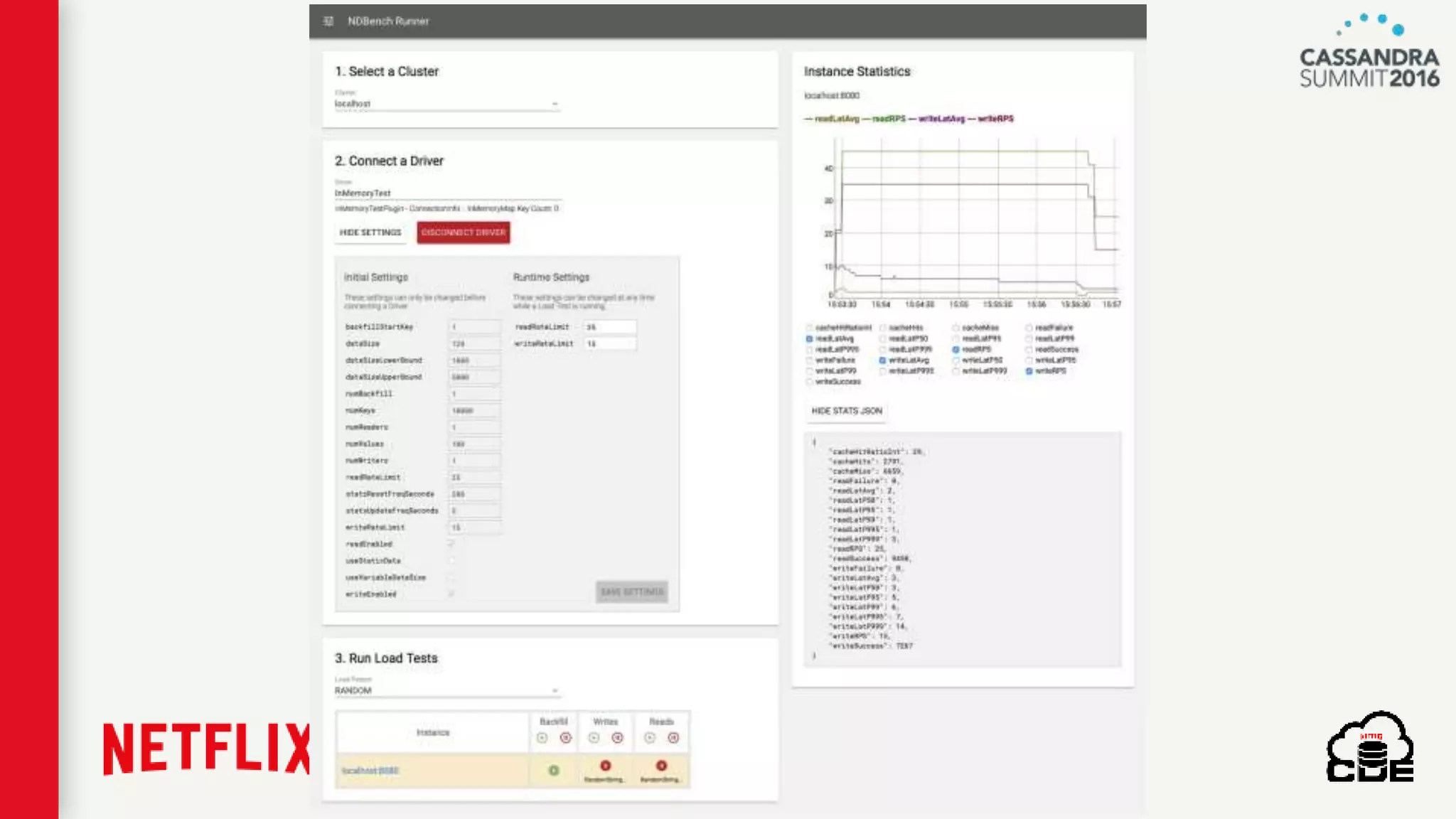The document discusses ndbench, a benchmarking tool developed by Netflix for performance testing across various data stores, primarily Cassandra. It highlights ndbench's flexible architecture, configuration options, and its integration with Netflix's open-source infrastructure. The tool has achieved significant milestones, including successful migrations and improved performance metrics, and is designed to validate data model integrity and persistence layer efficacy in cloud environments.