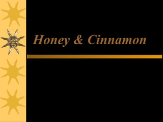 This document discusses the health benefits of honey and cinnamon according to various studies and traditional medicines. It claims that a mixture of honey and cinnamon can help treat numerous diseases and health conditions such as arthritis, heart disease, infertility, acne, weight loss, cancer and more. For each ailment, it provides instructions on how much honey and cinnamon to use and when to consume the mixture. The document encourages readers to share the information so others may benefit from the healing properties of honey and cinnamon.