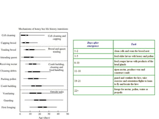 The document provides information on various types of honey bees found in India, their characteristics, and apiculture practices. It discusses five main species of honey bees in India: rock bees, little bees, Indian hive bees, European/Italian bees, and dammer bees. For each species, it provides details on their size, nesting behavior, honey production, and other distinguishing features. It also covers honey bee anatomy, the different roles of queen, drones and workers, honey bee life cycles, bee dances, and honey bee products/uses. The document summarizes honey bee pests, parasites, predators and diseases. It provides taxonomy information and life cycles for Apis cerana indica.