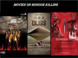 Honor killings involve the killing of a family or community member who is perceived to have brought dishonor on the family. They mostly target women and girls for behaviors like refusing an arranged marriage, being sexually assaulted, seeking divorce from an abusive husband, or engaging in homosexual relationships. Honor killings are more common in northern Indian states like Punjab, Haryana, and Uttar Pradesh. They violate the law but continue due to cultural acceptance in some communities. Preventing honor killings requires changing social attitudes, enacting stronger legal consequences, and protecting at-risk individuals.