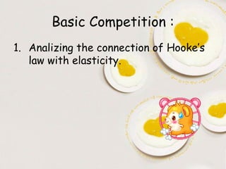 1. The document discusses Hooke's law, which states that the extension of a spring is proportional to the load applied, and defines it mathematically.