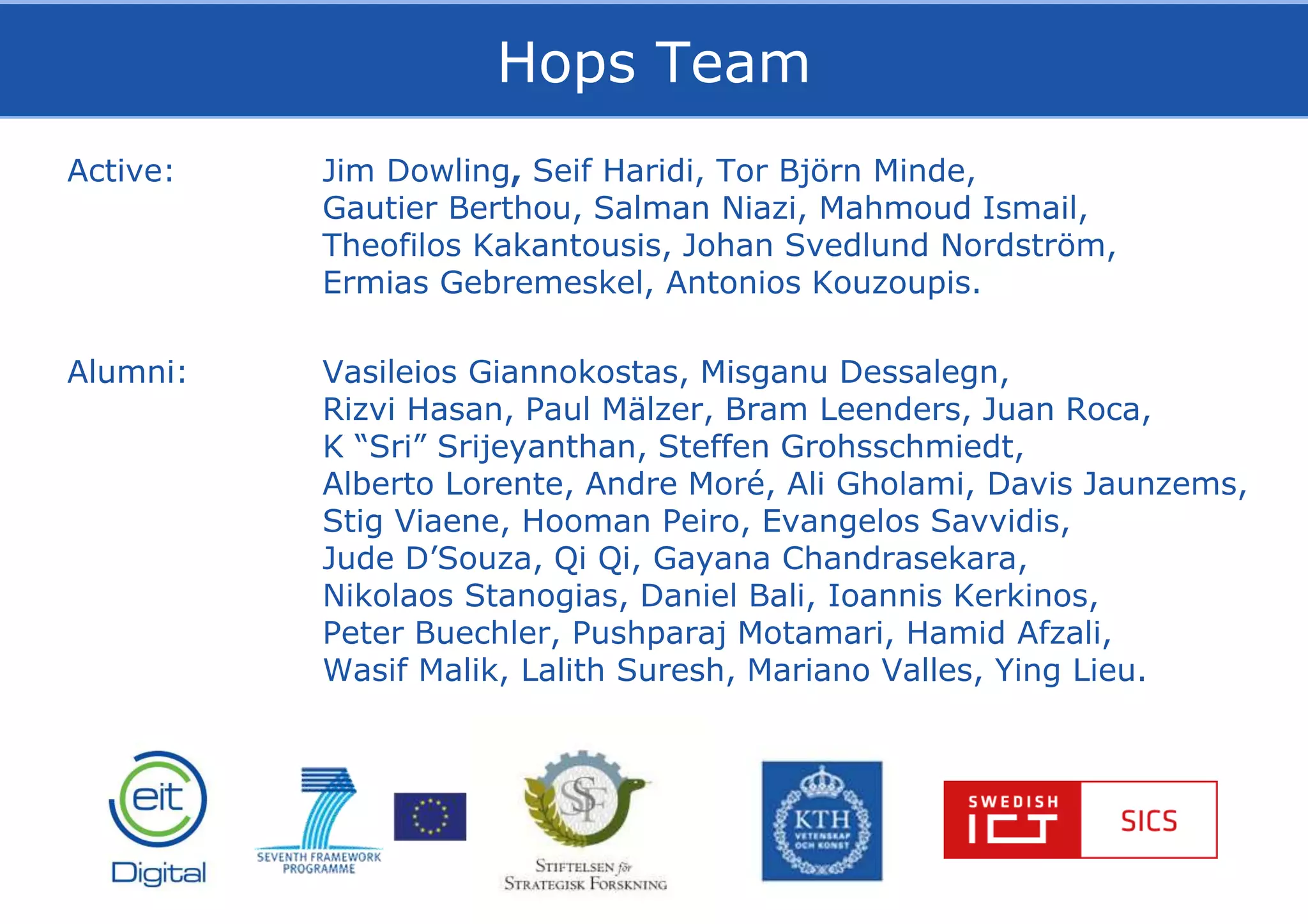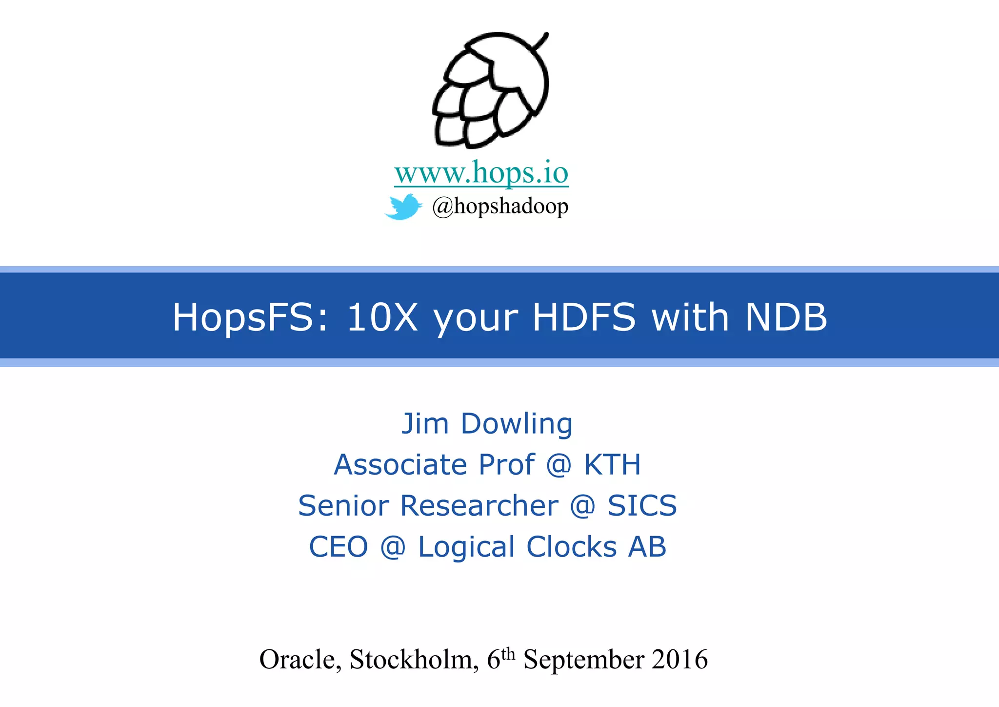 HopsFS provides a 10x performance increase over HDFS by externalizing the HDFS NameNode metadata state to NDB, a NewSQL in-memory database. This allows the NameNode to scale beyond a single server by distributing the metadata across the NDB cluster. HopsFS also leverages implicit locking, path component caching, and heterogeneous storage including erasure coding to further optimize performance. Hops-YARN similarly improves YARN scalability by storing the ResourceManager state in NDB.