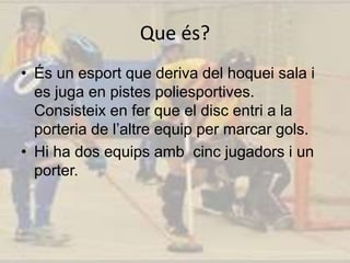 • Ésun esport que deriva del hoquei sala i