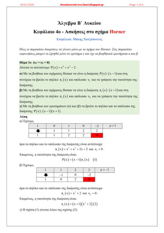 Κεφάλαιο4ο - Ασκήσεις στο σχήμα Horner