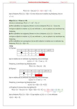 β) Με τη βοήθεια του σχήματος Horner να γίνει η διαίρεση 1π x : x 2 και στη