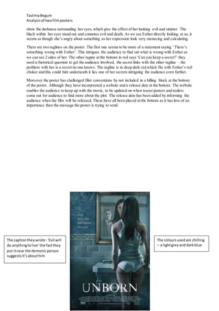 The poster for the film "Orphan" features a young girl looking directly at the viewer with shadows around her eyes, suggesting two sides - innocent and demonic. The scratched title can refer to either a child writing it or someone using a weapon like a knife, hinting at the horror genre. It draws the viewer in by the girl's unsmiling gaze that creates tension.