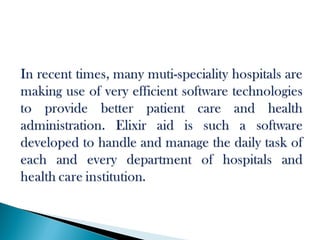 Hospitals require management software to efficiently handle the large volumes of data generated daily, as manual methods are impractical. Such systems help maintain legal records and facilitate high-level reporting for business analysis. Overall, implementing hospital management software enhances operational efficiency and compliance.