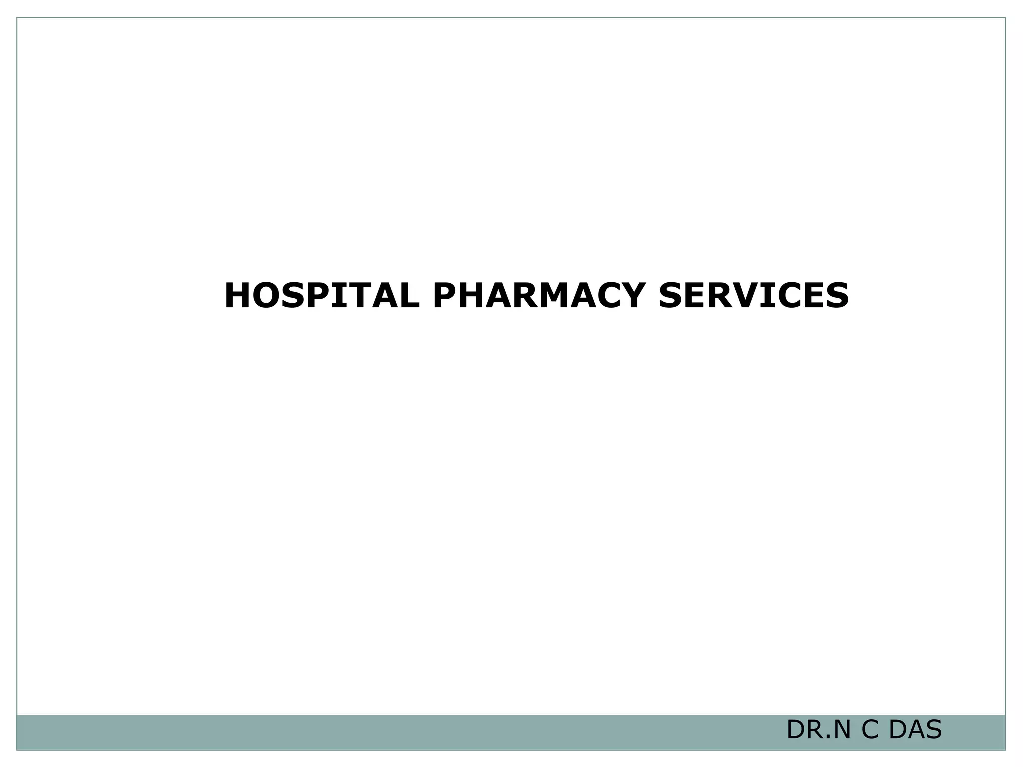 The document discusses hospital pharmacy services in India. It outlines the Pharmacy Act of 1948 and amendments that regulate pharmacy practice and qualifications. It describes the types of pharmacies and their functions, including dispensing medications, maintaining drug records, and ensuring quality. It also covers pharmacy planning, staffing, drug procurement, storage, and distribution to different hospital areas. The document notes challenges around drug pilferage, storage costs, and expired or outdated drugs.
