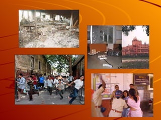 The document discusses the prevalence and types of violence faced by hospitals and healthcare professionals, highlighting workplace violence from patients and their families due to frustrations around care experiences. It outlines various risk factors including volatile encounters, understaffing, and poor security, as well as legal implications and prevention strategies for healthcare facilities. The content emphasizes the need for comprehensive violence prevention programs that are adapted to specific hospital environments and includes suggestions for training and environmental design improvements to enhance safety.
