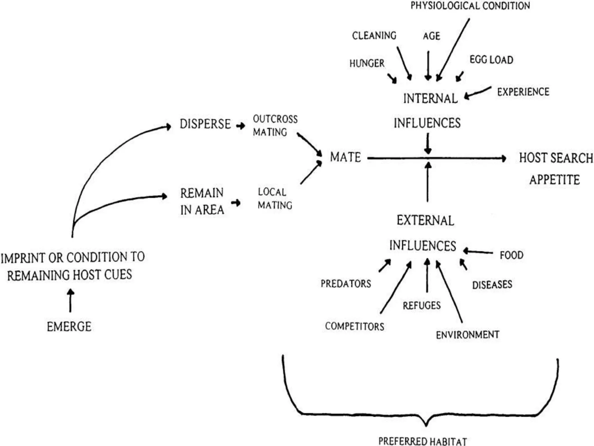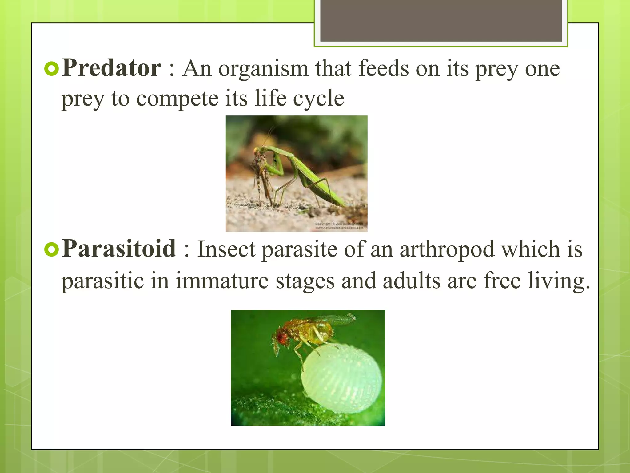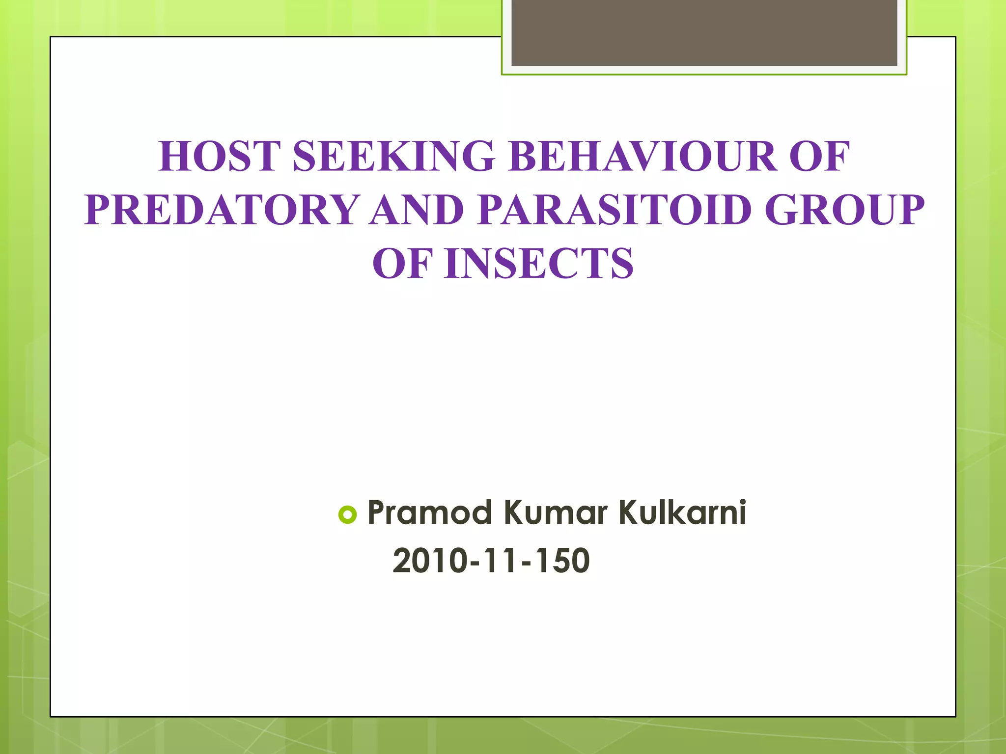 Predators and parasitoids go through several steps in host-seeking behaviour: host habitat location, host location within the habitat, host acceptance if contact is made, and determining host suitability. Host habitat location involves cues like attractants that guide insects to areas likely to contain hosts, while host location relies on senses like smell and touch to find hosts. Hosts can be rejected during acceptance if they are the wrong size, diseased, or already parasitized. Suitability depends on the host's nutritional and physical characteristics matching the predator or parasitoid.