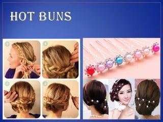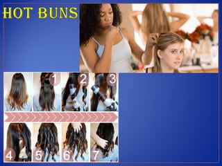 Hot Buns is a soft hair form that allows you to roll your hair around it to create a bun. You bend the ends of your hair to form the bun shape and then snap the ends into place on the Hot Buns form. An attached band is used to securely hold the bun in place on your head.